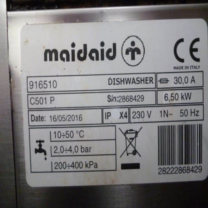 MaidAid C501P Undercounter Dishwasher (Single Phase)